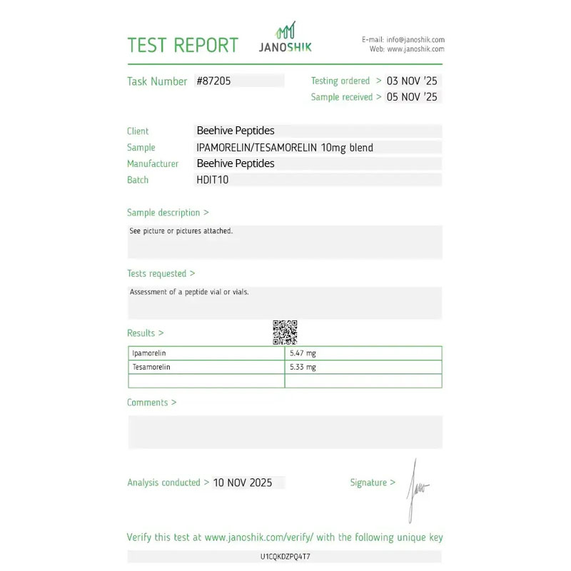 Beehive Peptides presents a groundbreaking advancement in peptide therapy with its innovative Ipamorelin 5 mg/Tesamorelin 5 mg blend. This powerful 10 mg combination vial represents the pinnacle of growth hormone optimization, specifically formulated for bodybuilders, athletes, and fitness enthusiasts who demand superior results with an exceptional safety profile. By combining two of the most advanced and selective growth hormone secretagogues available, this blend offers a synergistic effect that is greater than the sum of its parts, targeting both overall anabolic enhancement and specific, stubborn fat reduction.